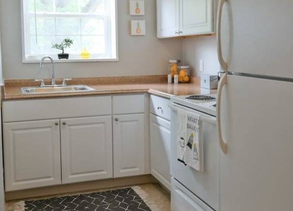 All brick three-story buildings set apart by vibrant green lawns welcome you home to this peaceful community. Inside, roomy studio, 1, 2 and 3 bedroom apartments at Columbus Park have been carefully remodeled with modern home amenities and color schemes. Wood-look laminate floors in kitchen and entry, fresh white cabinets, and brushed nickel hardware and fixtures are included in most apartments. Earth-tone apartments feature white appliances and granite-inspired counters while grey color schemes feature stainless appliances and black granite counters. But whichever color you choose, each apartment’s appliances, countertops, carpet and flooring will be new and freshly painted.