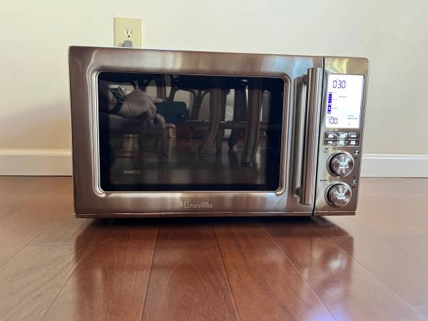 Breville stainless steel microwave which was purchased a year ago. It's been serviced by Breville recently and it was in the shop long enough that we ended up buying another microwave before it was returned to us. We decided to sell the unit after we got it back. It's in very good shape post repair. We'd prefer cash for the item. Here's a list of the features of the item clipped from Amazon.