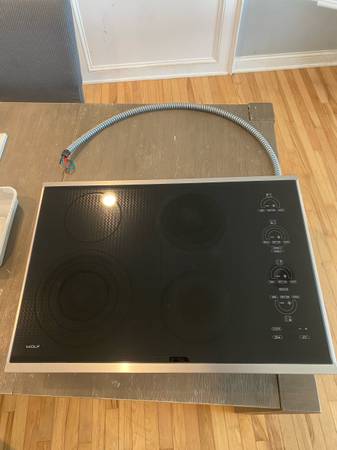 Wolf model CT30ES ELECTRIC STOVE TOP FOR SALE. Black with stainless steel trim 4 burner good condition $250.00