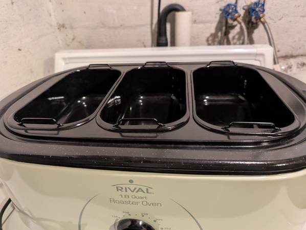 Just in time for your Thanksgiving dinner. Rival 18 quart Roaster Oven with 3-section warming insert. This oven has only been used a few times. Asking $25.00. If you're interested please email....