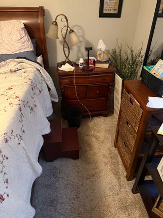 Bedroom Suite it’s in great condition just too big for us we are down sizing. Comes with sleigh bed nightstand and armors and set of steps