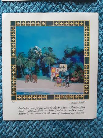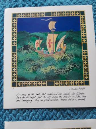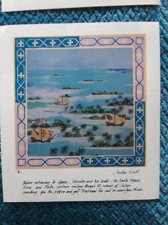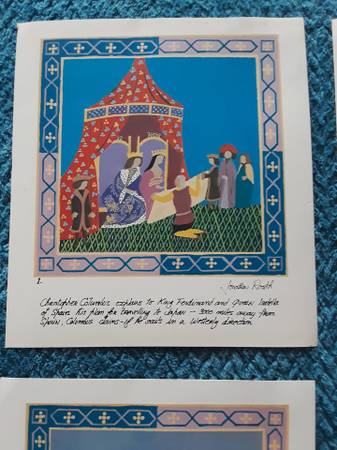All these prints and information page are a story about Christopher Columbus which tells the story of his travels for the king and queen of Spain.