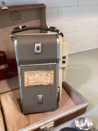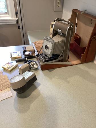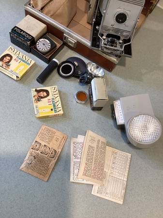 The camera is in excellent condition, but the case is not great. Has a Wink flash attachment, 2 light filters, a light meter, and lots of bulbs.