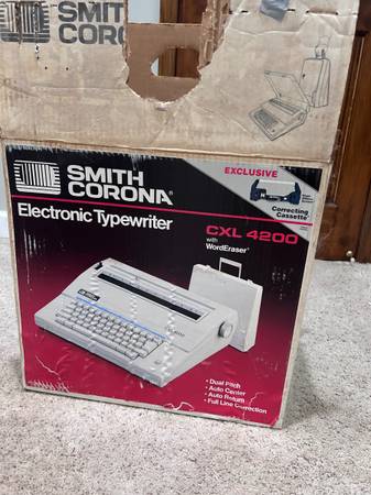 Classic 1980s electronic typewriter in excellent working condition! Comes in its original box with packaging and paperwork. Features Smith Corona’s WordEraser® correction system, dual pitch, auto return, and full line correction — perfect for collectors, writers, or anyone who loves retro tech.
