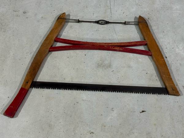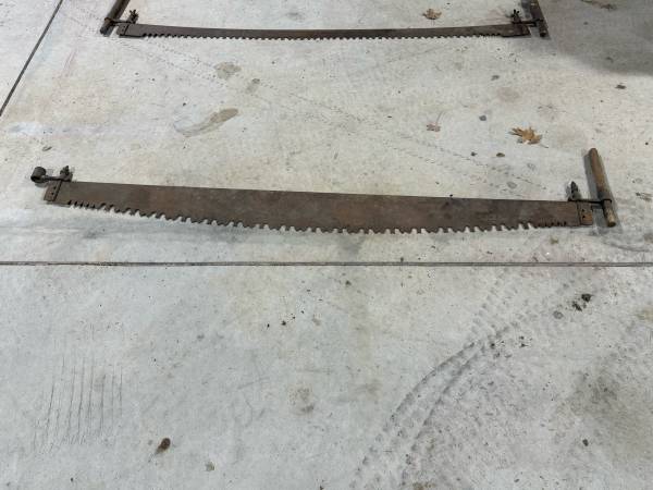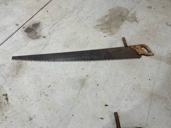 Lot of Antique; 1~ Grain Cradle Scythe, 2~ Scythes, 2~Buck Saws, 1~ Hand Saw, 2~ One Man Cross Cut Saws, 3~ Two Man Cross Cut Saws