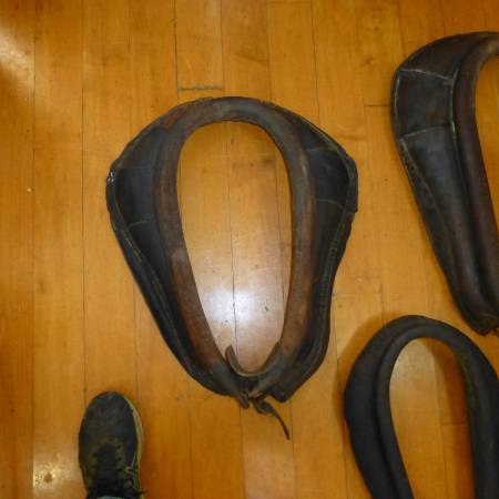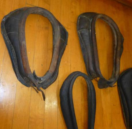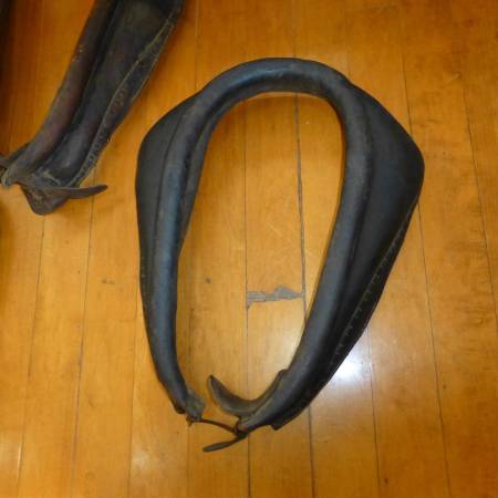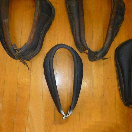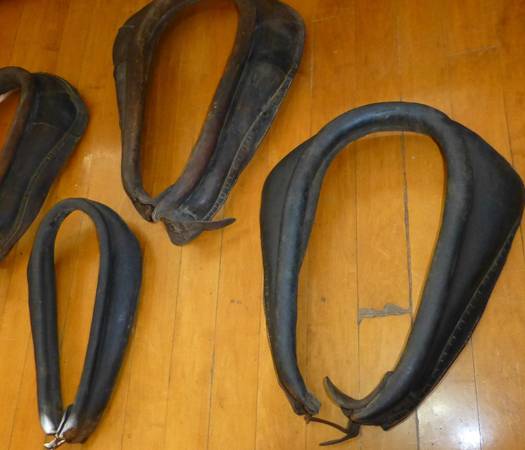Lot of 4 antique leather horse collars . Great for holiday decorating , add a mirror for a great primitive look. 95.00 for all , pick up mansfield ontario ohio.