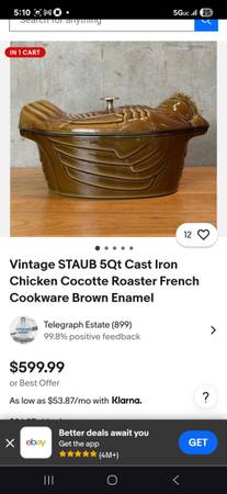 **REDUCED**Vintage STAUB 5Qt Cast Iron Chicken Cocotte Roaster...