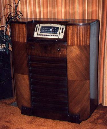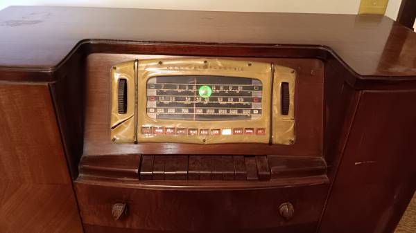 1939 GE H116 wooden floor model multi-band radio. Radio has tuning eye and piano preset keys. Radio works and has pretty good sound. Case is very good but do to the plastic dial escuchen which has...