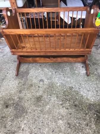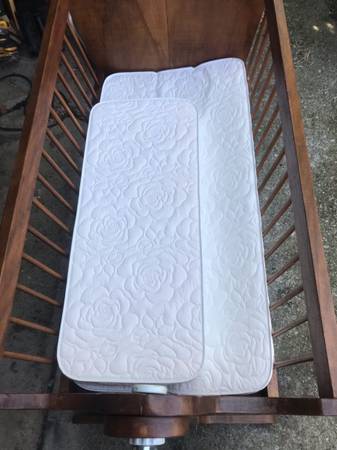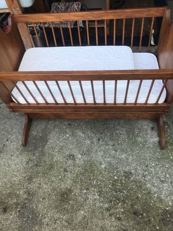 Baby wood cradle with 2 mattress 35 inches wide 19 depth 30 priced new $296
