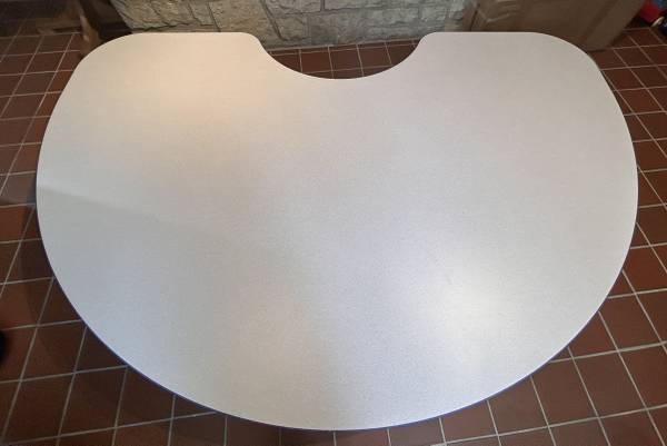 Available in 15 colors: blue top/black edge and legs; gray top/black edge and legs; gray top/blue edge and legs; gray top/green edge and legs; gray top/navy edge and legs; gray top/orange edge and legs; gray top/purple edge and legs; gray top/ red edge and legs; gray top/teal edge and legs; gray top/yellow edge and legs; maple top/black edge and legs; maple top/maple edge and legs; oak top/black edge and legs; red top/black edge and legs; yellow top/black edge and legs