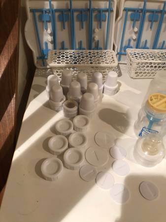 We no longer need the pump or bottles. The Medela pump comes in a carry bag. the Medela brand bottles were not used. The shields and valves were sterilized. I threw out the tubing due to difficulty sterilizing these.