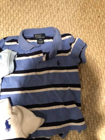 One Tommy (3T) and Polo (2T) shirts as shown. The Onesie is 9Mo. No stains or rips in any of them.