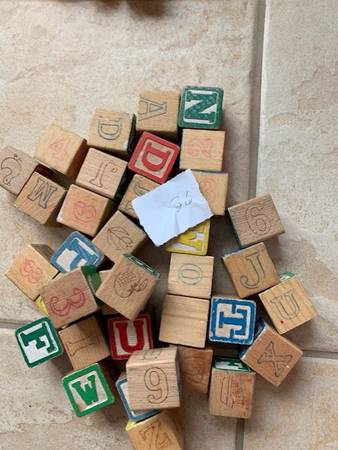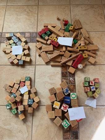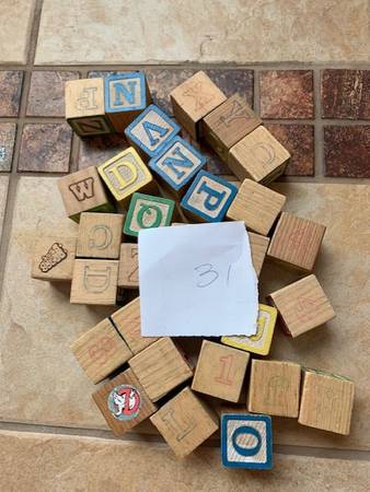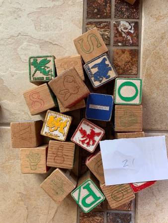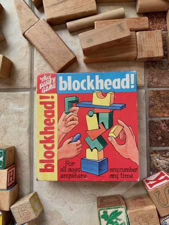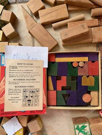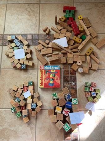 Wood Alphabet Blocks, Wood Pieces and Blockhead Game Vintage! - $45 (Dublin)