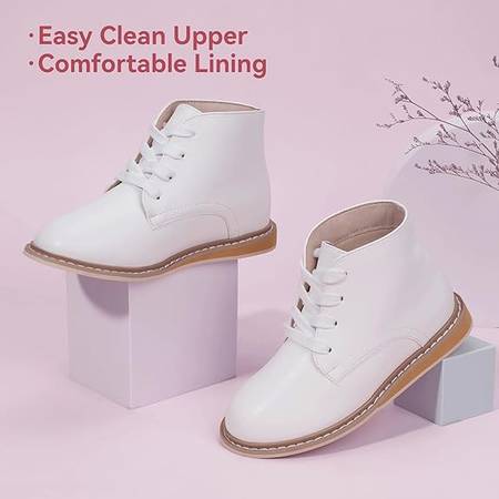 PANDANINJIA Toddler Girls Boots Kids Fashion Spring Fall Short Ankle Booties Comfort Lace Up Girl Flats Dress Shoes