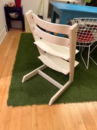 Well loved and ready for its next home. Signs of use here and there but these are solid wood so functionality is as good as day one. Fully adjustable from baby to adult. Accessories readily available on Amazon.
