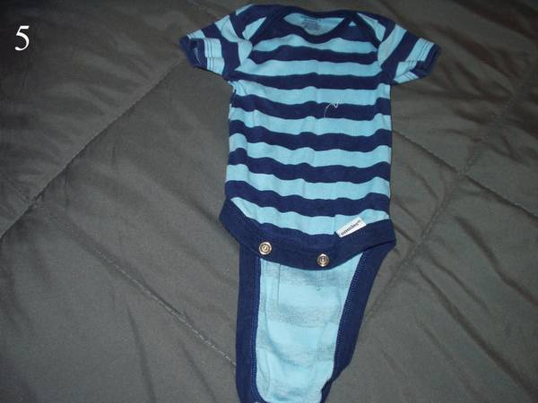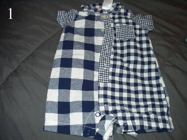 We have some Newborn Onesies, a sleeper and a romper for sale. $1 each. Buy what you want or take all. If you only want a few please let me know which one you want by the number on the picture.