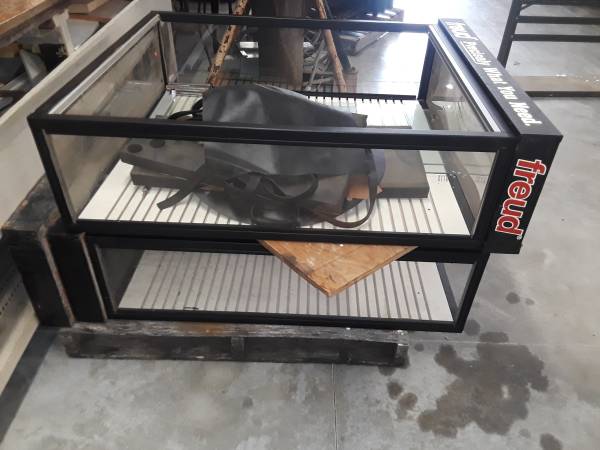 THESE ARE 2 EXCELLENT CONDITION GLASS DISPLAY CASES THAT ARE 4 FEET TALL AND 40 INCHES WIDE AND 12 INCHES DEEP EACH. THEY ARE COMPLETE WITH ALL GLASS SLIDING WINDOWS THAT HAS THE LOCKING SYSTEM AND...