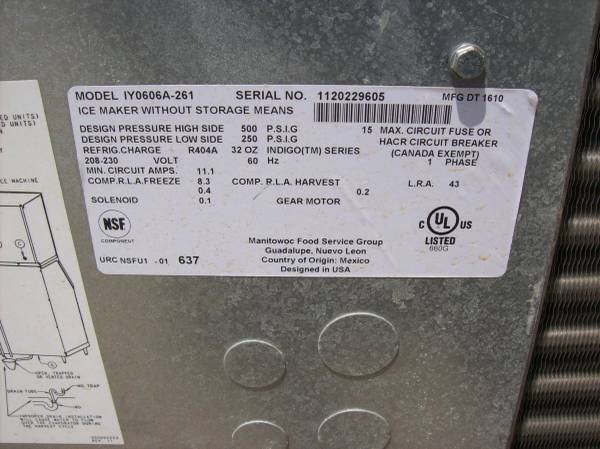 This is a damaged Manitowoc ice maker. The damage is very slight. The manufacture date code is October of 2016.