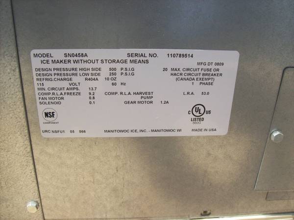 This is a new, old stock Manitowoc ice maker. The manufacture date is September of 2008.