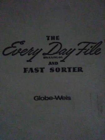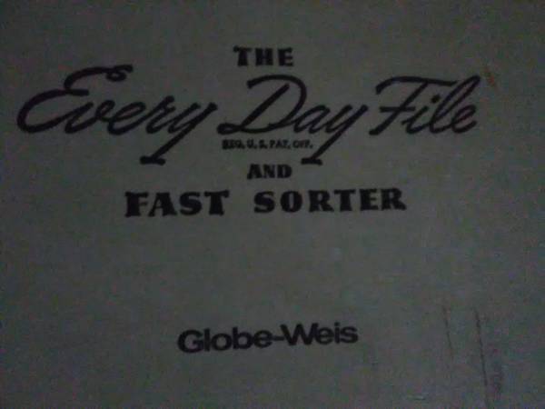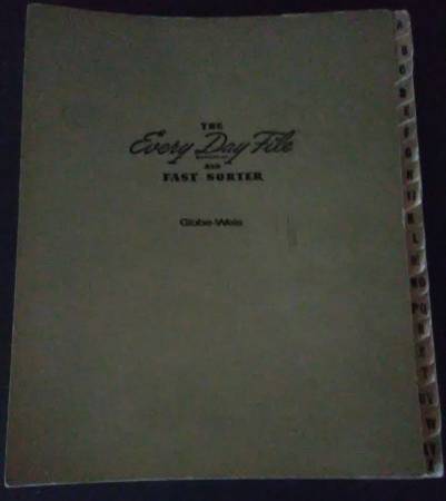 A-Z File Sorter by Globe Weis. Has 20 Tabs. This is a real old version of the manual filing systems. They are still out today at about 5 to 7 times what I'm selling for. They are easy, quick and efficient to use. This system is strong sturdy heavy cardboard construction with some obvious normal wear and tear on the edges. Sturdy accordion spine allows for large number of inserted items.