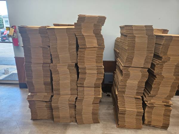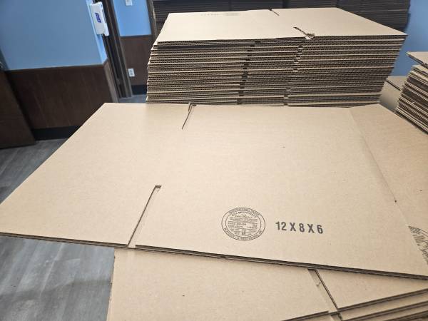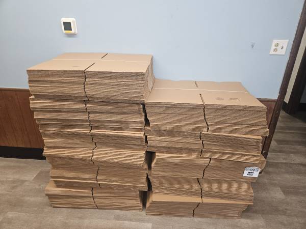 12x8x6 are 50 boxes for $25. 15x15x6 are 25 boxes for $20. Located off Alum Creek and I-270.