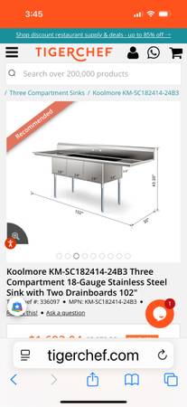 102 inches long 30 inches wide New NSF Legs Drainboards Bowls 18”x 24”/ 14” deep Drain baskets
