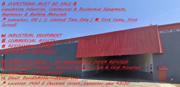 Liquidating Industrial, Commercial & Residential Equipment, Appliances & Building Materials