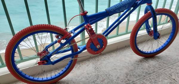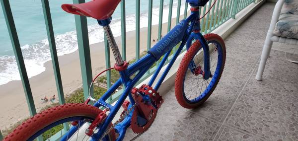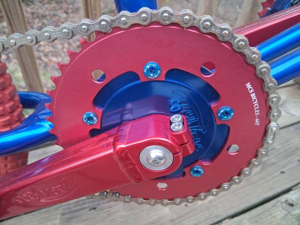 Long story short I purchased this frame and fork set many years ago, almost bought another as the seller had the SE baby blue one as well. I built it up with nothing but the best parts from two of my favorite, legendary/old school companies-Bullseye & Bassett Racing. Every part is from them with the exception of the rims, grips and freewheel & front sprocket. The freewheel is a Profile Elite, the rims are Araya 7Xs, grips are Oakley B1B, 44T MCS sprocket.