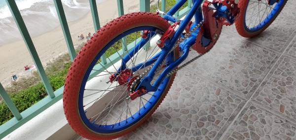 What makes this one even more rare is it's a first generation which utilized the original SE rear tubing and does not have the brace between the double down tubes. Some of Sal and Jesses later frames used boxed tubing for the chainstays for unknown reasons. Possibly legal reasons or they just ran out of the original style SE tubing..idk?
