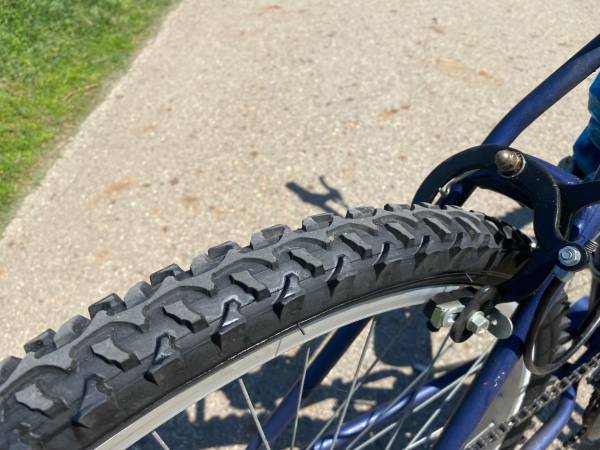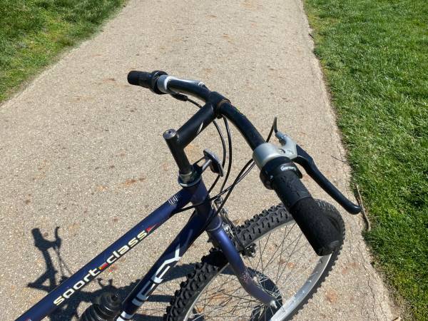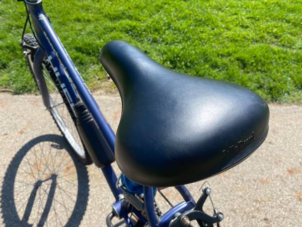 Adult bike (26” wheels) for sale. It has a 21 speed Shimano shifting system that was just serviced in preparation of sale. This bike has a design that allows for both on road and light off road riding. The tires are in good condition as pictured. It has a Selle Royal seat. Unfortunately the code to the bike lock has been lost but it does not impact anything. This bike would be suitable for trail rides, commuting or all around recreational riding. Email me if you have a question or if you would like to arrange pickup. No phone calls, please.
