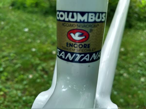 Santana's top steel model in the 90's. One of the lightest steel tandem frames made, and the Columbus Nivachom tandem tubeset was made custom for Santana. I believe the steel Nivachrom fork was only offered for two years before they changed it to aluminum. Includes frame, fork, headset and spacers, front and rear brake yokes, and original seatposts (stoker is a suspension post). Size is extra large, and is drum brake capable. Actual measurements are captain seat tube 59.5cm, stoker seat tube 52cm. Effective sizing is approx captain 62cm, stoker 54cm. Fork steerer is uncut. I also have the original wheels (48 spoke touring wheels), sale could be negotiated.
