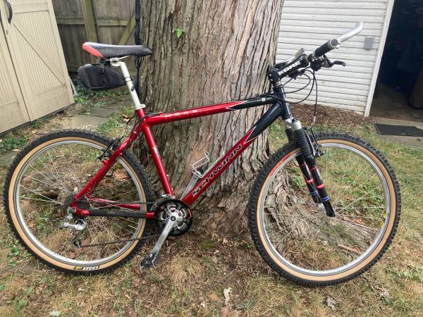 I’ve owned this bike since new! Hasn’t been ridden much over the last few years, but still solid. Fun vintage cross country mountain bike. Brand new Panaracer tires (26x2.1) and tubes, recent tune-up, newish saddle back bag. Pretty much all original build components. Again, I’ve had this bike since new and always cared for it. This is from back when Schwinn was making some killer MTBs in the mid to late 90’s. 19in frame from center of crank to top of seat post tube.