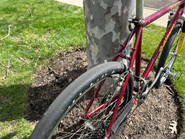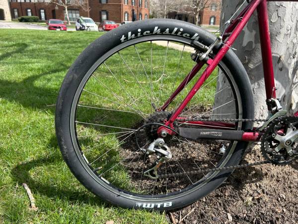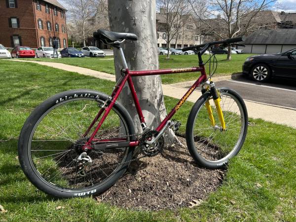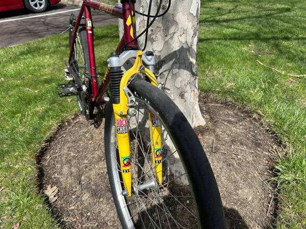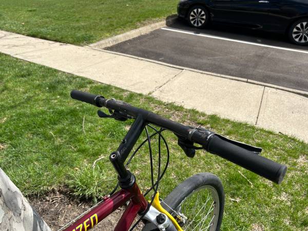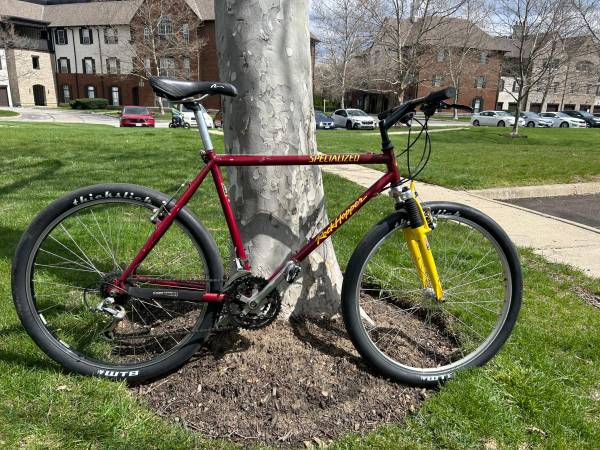 Specialized Rockhopper for sale! Specialized is a high quality bike manufacturer similar to Trek, Giant and Cannondale. This bike was serviced about a year and a half ago with new handlebar grips, new pedals, rebuilt bottom bracket, new cables, Thickslick tires, and more (the bike was inspected by a shop and whatever was needed to get the bike ready to ride was done!) The tires alone run $60 plus installation and tubes (the tread is supposed to be smooth on this particular tire, they are in good used condition). Upgraded koolstop brake pads. This bike has an 21 speed Shimano shifting system with trigger shifters. The front wheel, rear wheel, and seat post have quick release. It also has a Rock Shox front suspension system. Cosmetically shows normal wear from use- see photos as they are the best description of cosmetic condition. Very well built iconic bike. Great bike for trail rides, commuting, or recreational riding. Email me if you have a question or if you would like to arrange pickup.