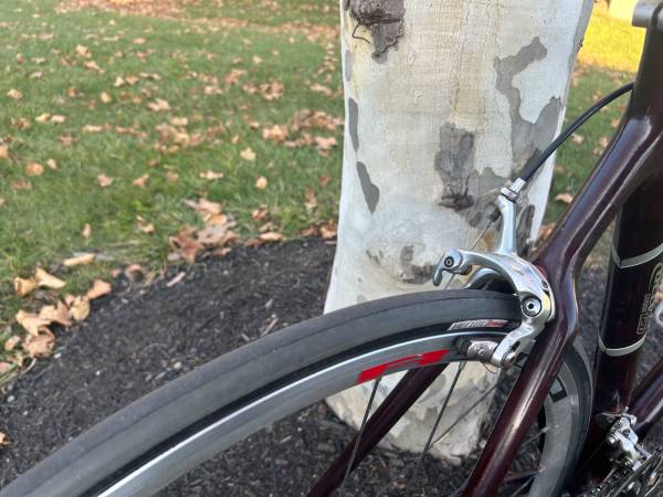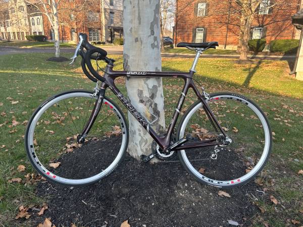 Very high end Trek road bike for sale! This bike retailed for $3,900 new- here is a great opportunity to pick a high end bike up for 1/4 of its original msrp. It was hand built in the Unised States. This bike has top shelf Dura Ace components. Very lightweight as the frame is all carbon fiber. Cosmetically the bike shows some wear from use such as chips in the paint, which should be expected given the price relative to it’s original msrp. See photos for best description of cosmetic condition. This is a great opportunity to get a high end road bike for the price of an entry level road bike. Email me if you have a question or if you would like to arrange pickup.