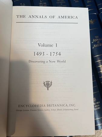 Separately, or in addition to the price above, I have a complete set of Britannica Annals of America with first hand first person documents throughout American history. That one is about half the price of the great books series.