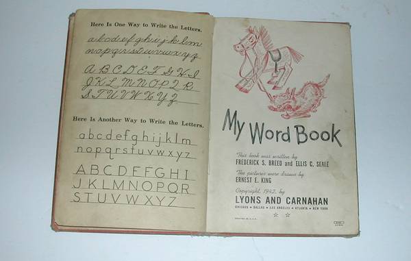 My Word Book, Frederick S. Breed and Ellis C. Seale, copyright 1942 by Lyons and Carnahan. Hardcover and 80 pages intact, hardcover shows wear, some pages have tears, lots of pages with pencil/ink...