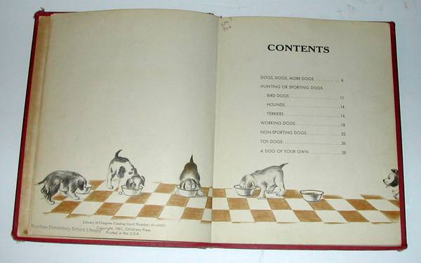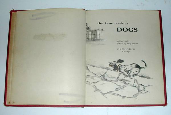 Dogs by Elsa Posell the true book of Dogs, pictures by Betsy Warren, copyright 1961 Children Press. Hardcover, 46 pages, both cover and pages intact, only marks all on inside front and back cover...