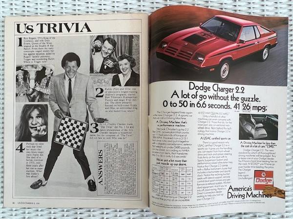 Vintage US Magazine - December 8, 1981. John Lennon, Yoko Ono, Matt Dillon, Rick James, Landers Sisters, Erin Moran and more. Rare. VERY GOOD condition. Newsstand issue / no label. 80 pages. No...