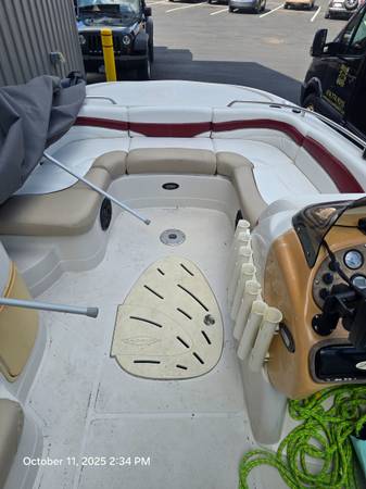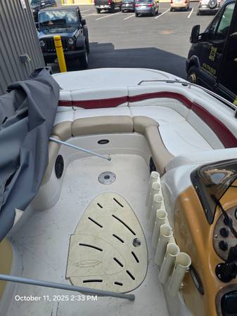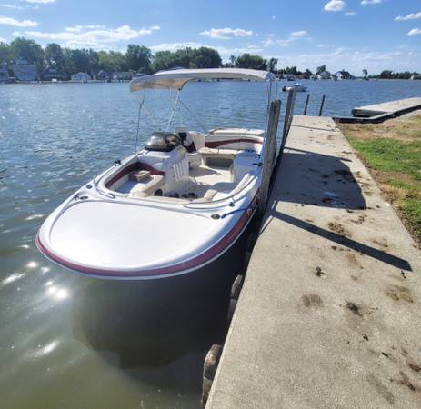 Tahoe Deck boat, bought in 2022, engine and drive serviced by Ohio boat works since bought.. have all records and reciepts including previous owner, all vinyl seats and engine cover redone 2 years ago, cover custom made 2 years ago.. new bikini top bought 2 years ago... last in water in 2024, was professionally winterized when done in 2024. Don't have time to enjoy.. batteries replaced and been on trickle charger since 2024.. has trolling motor on outboard, fish finder.. have all accessories, life jackets, skies, tubes, etc.. all come with boat..