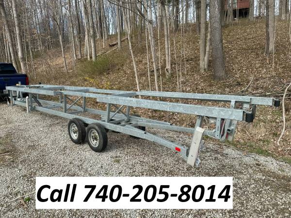 We rent Hydraulic Pontoon Trailers that will lift your pontoon with the touch of a button. These are commercial grade, fully galvanized and heavy-duty trailers. Pontoons from 16 ft to 28 ft pontoons will easily fit on these trailers. Multiple trailers available.