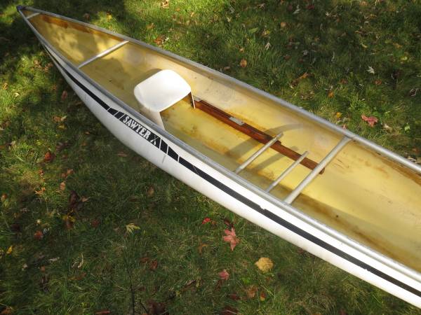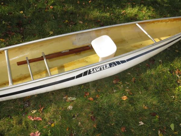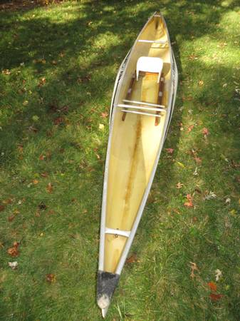 1980 Sawyer 17' Solo Racing Canoe. Fully trimmable seat and footrest. Ultralight Glass layup comes in complete as you see it at 40 lbs, no ounces. 2027 Ohio registration.