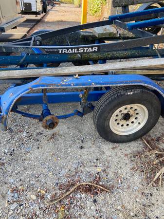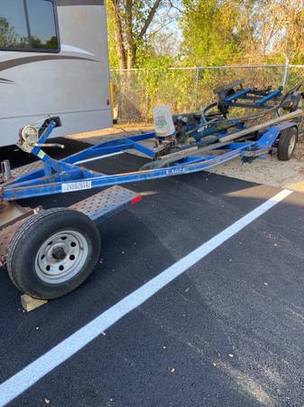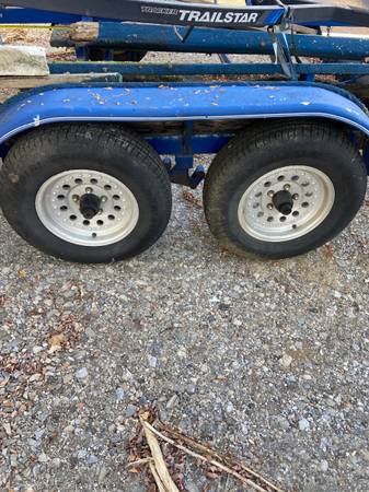 24 feet, Eagle Blue Boat Trailer. Dual axle with brakes, damaged / bent - one axle and bent fender please look at pictures. 614-670-six three seven three , Leave message/text. Thank You, Joe