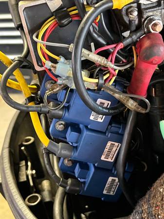 Runs good but has fuel leaking around the carbs. They will need rebuilt. Has newer coils and fuel lines. Has the oil tank deleted so you have to premix in the tank.(like that when I got it)Only reason for selling is up graded to a newer 4 stroke efi motor. Motor was from South Carolina so no title but original registration card and bill of sale.best way to contact is text 614 three 7 four 280 nine. Or email.