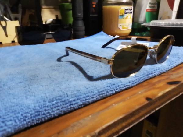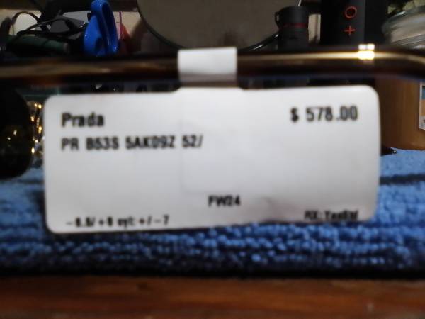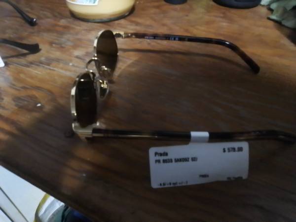 I have a brand new pair of gold and dark brown plastic wood grain Prada sunglasses that have never been worn no scratches no flaws perfect condition and a awesome Christmas gift my wife paid 578$ and we are just trying to get a little bit of our money back because we fell on hard times and have bills that need paid