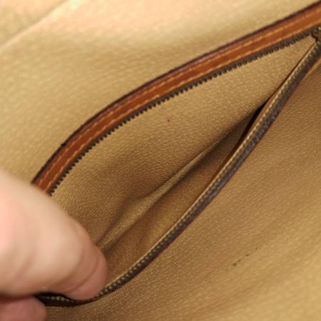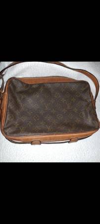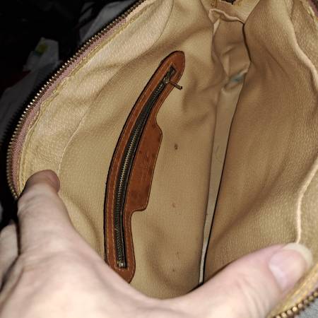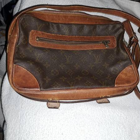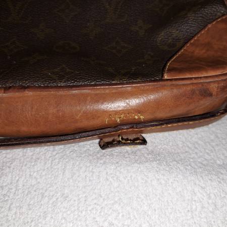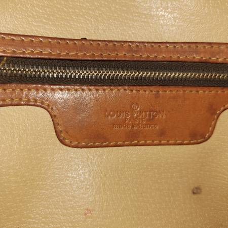 Genuine Louis Vuitton from the late 1970's to mid 1980's. Was purchased at a designer. auction by my mom. Really nice shape. Doesn't show much wear. Needs bottom two purse strap guides resewn. Not hard because the needle holes are already there. The purse would look even better if you condition or polish the leather. I would do it, but chances are it wouldn't be theme way you like.