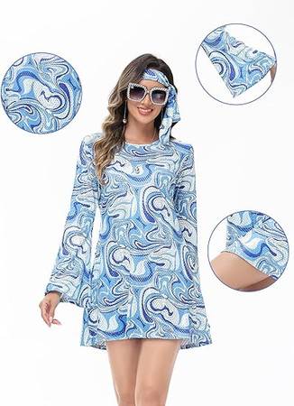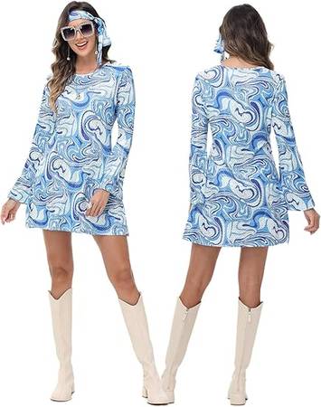 60s 70s Disco Outfit Hippie Costume Women, 1970 Style Clothes XX-Large BLUE