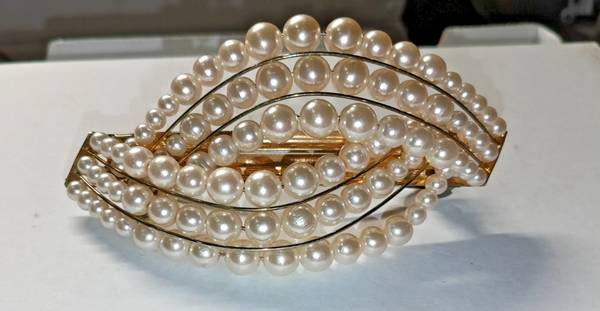 This vintage faux pearl hair barrette is a classic and elegant hair accessory suitable for women and teens.