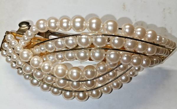 VINTAGE FAUX PEARL HAIR BARRETTE UP DO HAIR ACCESSORY
