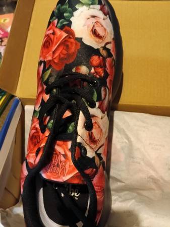 print. Designed for women, these athletic shoes are brand new and come in a size 10W. With a comfortable and stylish sneaker style, these shoes are perfect for any active woman on the go. The unique color combination and bold pattern make these shoes a statement piece, perfect for adding a pop of color to any outfit.