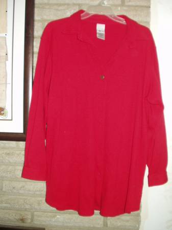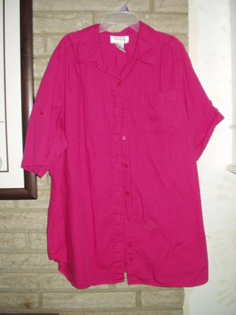 $5 each Mainstreet Blues, bright pink long shirt, size 1X. Button front, pocket on front of left side. Sleeves can be worn rolled up with strap. New - $5 Roaman's Red Thermal big long sleeve shirt,...